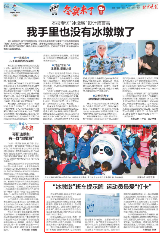 北京晚报等:“冰墩墩”班车提示牌 运动员最爱“打卡”