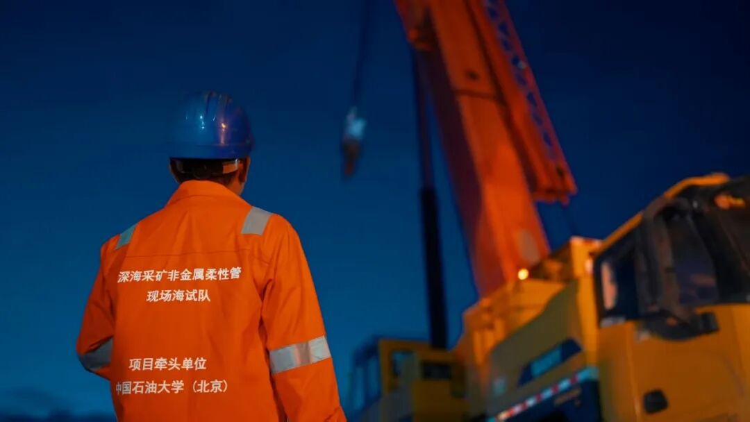 本次非金属柔性混输管的海试由长沙矿冶研究院有限责任公司作为海试牵头单位与总指挥单位,从10月9日开始码头安装调试,27日由广州码头启航至三亚海域,并于31日完成柔性管道海上安全布放回收与全部试验任务,试验区水深103m,非金属非粘结智能柔性管总长250m,首次验证了我国深海采矿全软管输送性能、管体水下空间构型与阻塞的实时健康监测能力,试验中矿浆最大输送体积浓度达15%,矿石粒径20mm,稳定输送流量为457m3/h,实现了设计水深6000m级深海采矿非金属智能柔性管从设计方法、关键超耐磨材料研发、加工工艺与核心制造装备,以及海试评价从“0”到“1”的技术突破,取得了从技术探索迈向海试验证的胜利,为我国6000m级深海多金属结核采矿输送系统的联动海试提供了核心关键技术与装备。