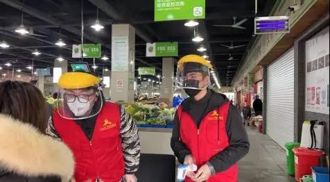 经济管理学院的胡明禹在家乡的第二中心市场门口提供志愿服务,严守疫情防控“战线”。浙江作为重灾区之一,实行了社区通行证和菜场采购证的“双证”政策,来采购的老人们经常会忘记带菜场采购证或者超过购买次数,就需要对他们进行劝返,严格管控进入市场采购。胡明禹早上8点站岗到下午5点,一天体温检测登记上千人,只有中午1小时吃饭的时间可以上厕所,稍微休息会儿。不同于街道社区门口的体温测量点,这里人群密集度更高,类型更复杂,面对的风险也更高,需要佩戴防护头盔和护目镜。此外,场所的特殊性使得他们站岗期间也没办法摘口罩喝水,一天下来说得嘴巴都干了,脸和耳朵也被口罩勒红了。