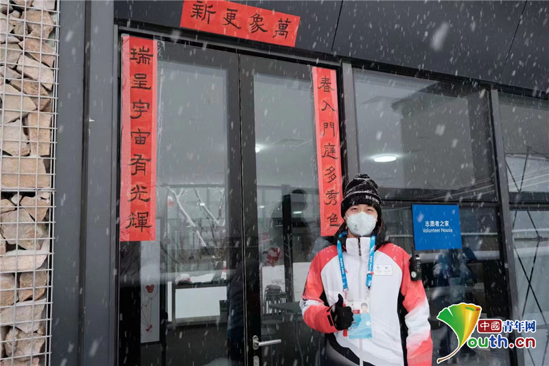 冬奥会恰逢中国春节,为弥补大家无法回家过年的遗憾,孙立翔组织村里礼宾空间、访客空间和媒体空间的志愿者们一起开展“守岁海陀·延庆冬奥村新村民共赢未来”的主题活动。