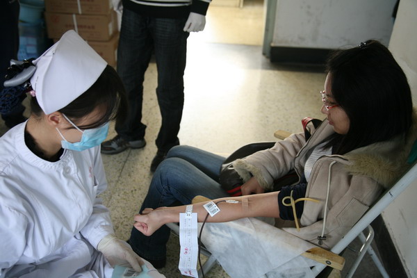 2009年2月28日,在校领导、校办、校红会的大力支持下,圆满完成2009年度无偿献血工作。经校医院统计,参加本次无偿献血活动的实际献血人数为315人,采血总量63200毫升,其中近百人两次以上无偿献血。在献血活动过程中,陈大恩副校长多次来到现场看望献血学生和工作人员,献血现场气氛异常感人。学生踊跃参加献血,距献血开始还有一小时时,在校医院门前排队准备参加无偿献血的同学已达到千人。由于北京市血液中心采血人数和准备物品有限,只好将没有拿到表格的同学及时疏散。但仍有数百名学生自愿当体检不合格人员的替补,继续在校医院门前等候。