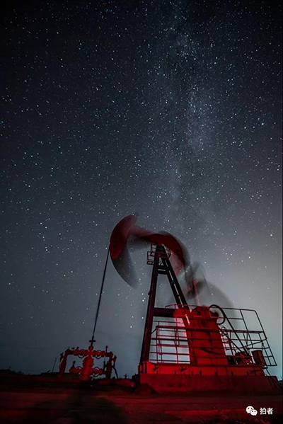 2019年10月29日,塔中,夜幕下正在运转的抽油机。
