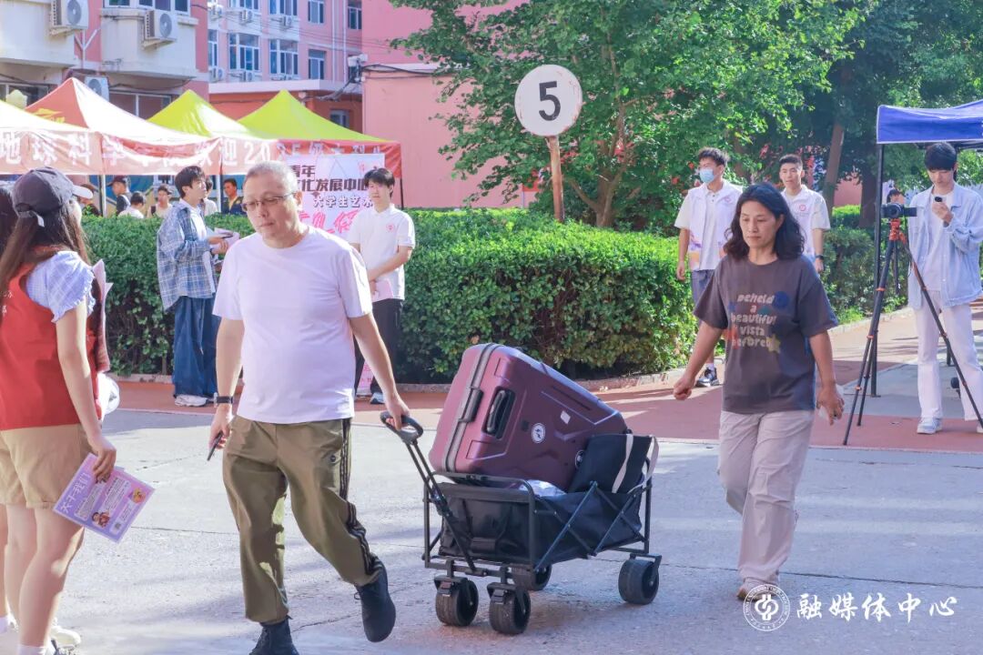 鼓鼓的行囊,装满的不只是物品,更是希望与对未来的向往。我们接过行李,推动小推车,将第一份来自中石大的温暖送给你。