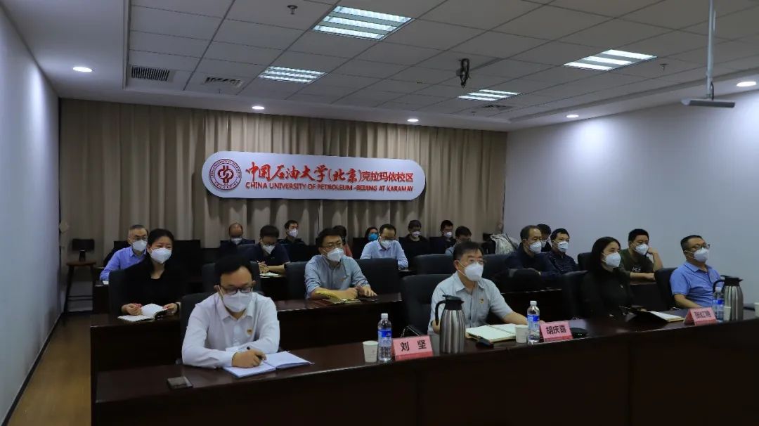 全体校领导、校本部和克拉玛依校区全体中层干部、校本部教工党支部书记、学校党的二十大精神宣讲团成员代表等近300人参加会议。会议由党委副书记文永红主持。