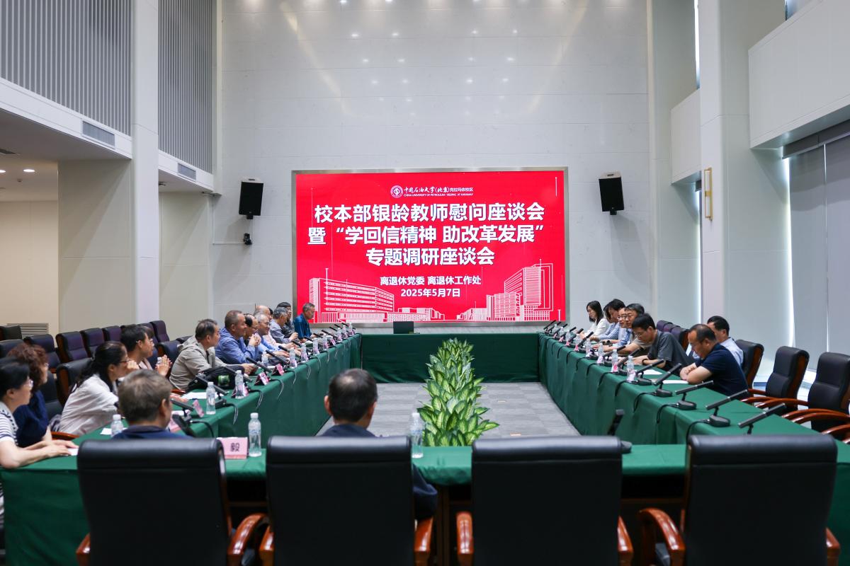 在“学回信精神·助改革发展”校本部银龄教师慰问座谈会上,离退休工作处负责人为校本部银龄教师送上慰问金,人事处负责人为2名银龄教师颁发从教四十周年纪念奖牌。银龄教师们一致认为,习近平总书记重要回信精神强调了扎根基层、服务国家的重要性,建议校区在人才培养方面注重实践教学,为能源行业输送更多实用型人才;在科研方面加大投入,鼓励教师开展前沿研究,加强与企业的合作,推动科研成果转化。校区相关负责人指出,要将习近平总书记重要回信精神融入校区发展的各个环节,全方位推动校区高质量发展。离退休工作处负责人表示,将持续做好服务工作,打造银龄教师温暖的港湾。
