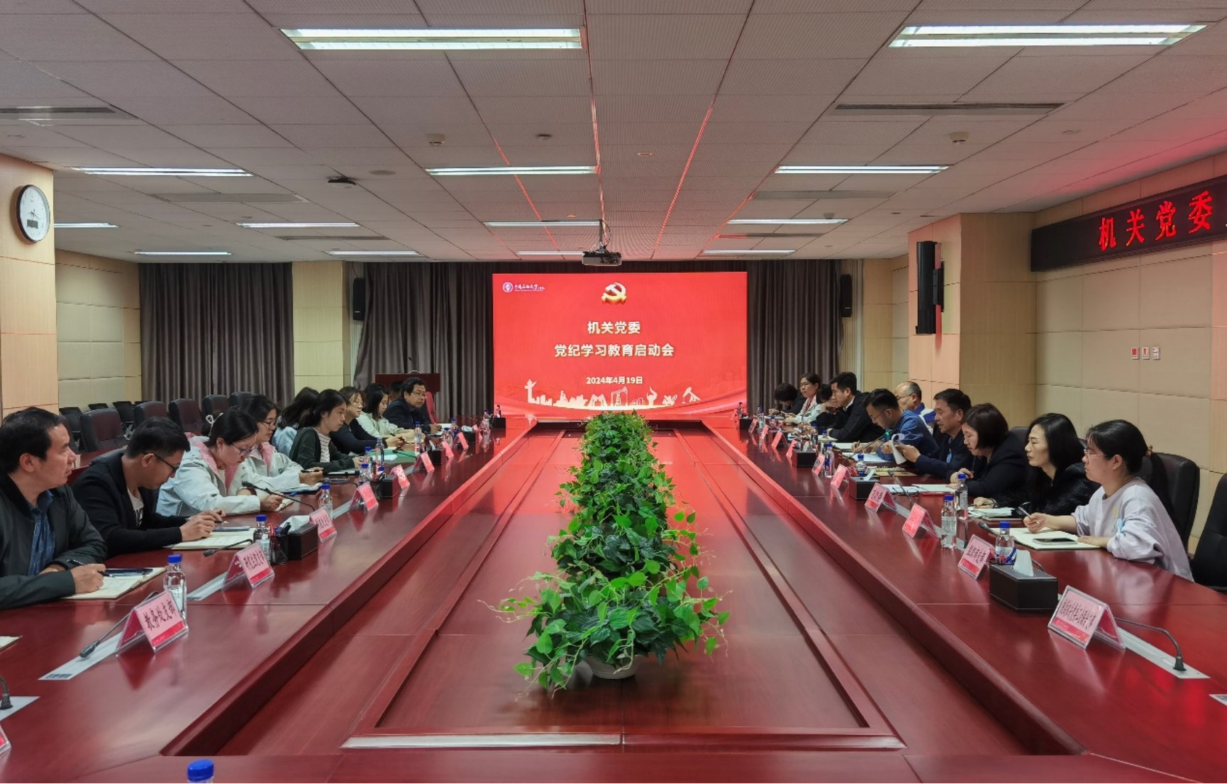 精心组织,扎实起步。4月18日,召开机关党委委员会议,研究制定机关党委党纪学习教育《实施方案》和《读书班学习方案》,明确机关党纪学习教育重点任务6项、读书班警示教育和专题学习研讨内容7项;成立由机关党委委员组成的党纪学习教育领导小组,保障学习教育扎实推进。4月19日,召开机关党委党纪学习教育启动会,对机关开展党纪学习教育进行动员部署,机关党支部书记等30人参加会议。会议要求机关各党支部高度重视、精心组织,严格按要求做好党纪学习教育各项工作。