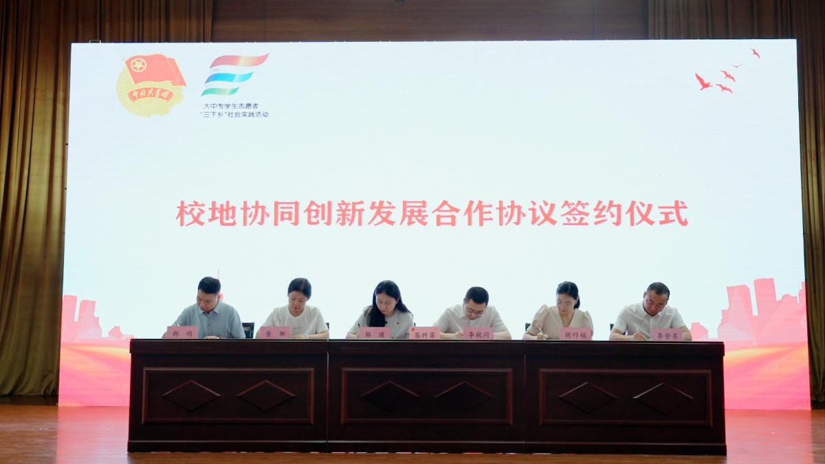 为加强校地共建,探索高校共青团与地方同频共振、优势互补、携手并进的融合发展之路,7月26日,beat365在线唯一官网(北京)联合西北农林科技大学、陕西中医药大学同共青团榆林市委员会在陕西省榆林市举行校地协同创新发展合作协议签约仪式。榆林市人大常委会副主任、市总工会主席冯光宏,榆林学院党委委员、副校长马亚军,榆林市委组织部四级调研员冯路、榆林市公共就业和人才服务中心主任贺飞、榆林市教育局四级调研员杨波、榆林市团市委副书记李秋同、榆林市团市委副书记景娜、beat365在线唯一官网(北京)团委副书记韩瑾、“兴文逐梦·石子担当”团队师生代表以及榆林市下辖各区县团委书记、榆林市三下乡实践团队师生代表参加会议。