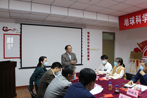 地球科学学院党委书记王贵文从学院党委基本情况、党建创新培育工作基础、党建创新培育整体规划思路、具体做法和预期目标等方面介绍了学院党建创新工作。