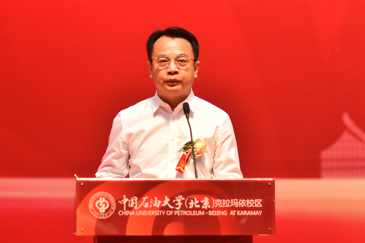 古鸿飞在致辞中表示,这是一场与时代同频共振的婚礼,中石大与克拉玛依在时代的洪流中血脉相连,中石大人选择扎根西部、建设边疆,让个人理想与强国征程交织,是对总书记重要回信精神的生动实践。他祝福新人们,百年好合、幸福美满,在风雨中并肩而立,在平凡中坚守初心,用行动将“中石大担当”熔铸进克拉玛依精神基因。