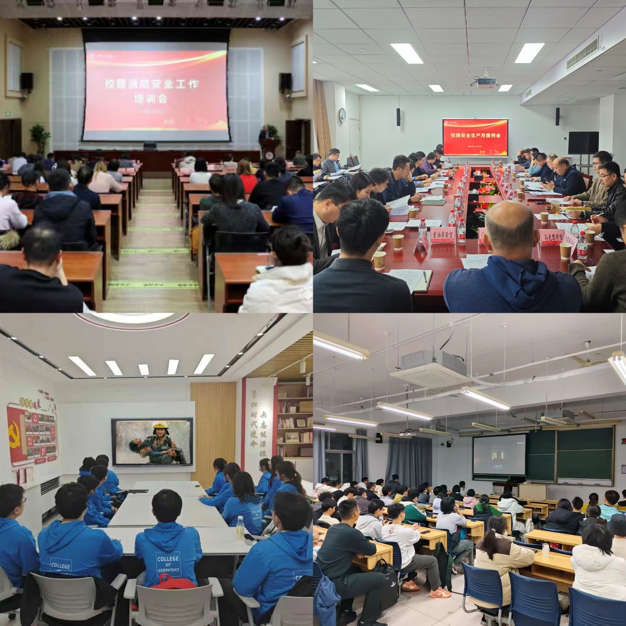教育培训入脑入心,提升全员消防素养。学校将理论学习与警示教育相结合,组织各单位深入学习习近平总书记关于应急管理的重要论述和消防工作重要指示批示精神,并结合新修订的《重大火灾隐患判定规则》和校园火灾警示案例开展专题宣传和学习。学校邀请海淀区消防救援局专家来校开展校园消防安全专题培训讲座,相关职能部门负责人、学院领导、安全员及师生代表参训。此外,学校创新安全教育形式,通过线上知识竞赛、“观影征文”主题班会等活动,实现消防安全教育进课堂、进头脑,推动消防安全教育深入人心。