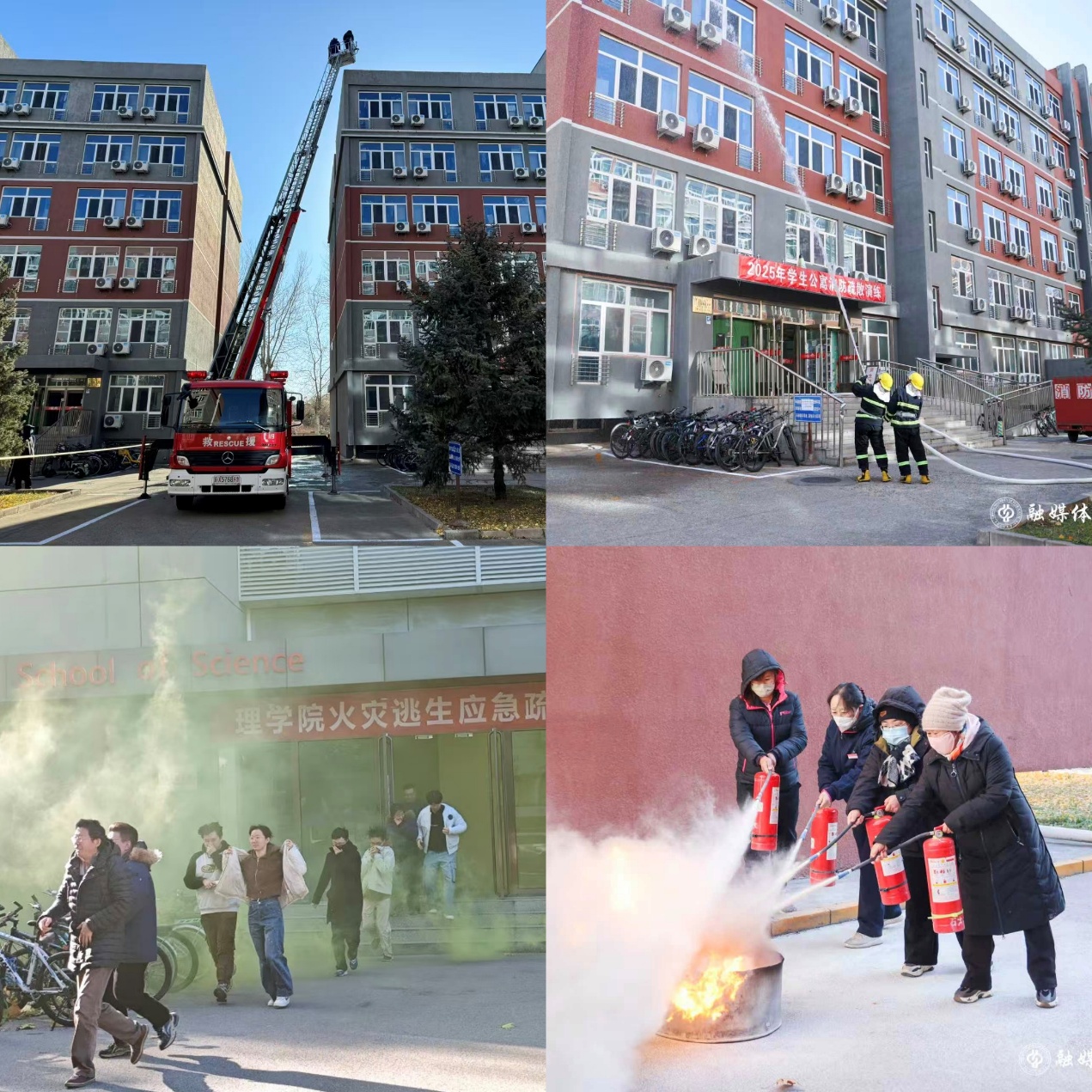 实战演练锤炼精兵,强化应急处突能力。为检验并提升应急预案的实用性和师生应急反应能力,各单位在完善预案的基础上,自主开展了多种形式的应急演练。学校先后在实验楼宇、办公楼宇、学生公寓等人员密集场所开展了消防疏散演练。演练结束后,现场组织了“灭真火”实操培训,确保师生切实掌握灭火器使用技能,提升“救早灭小”能力。