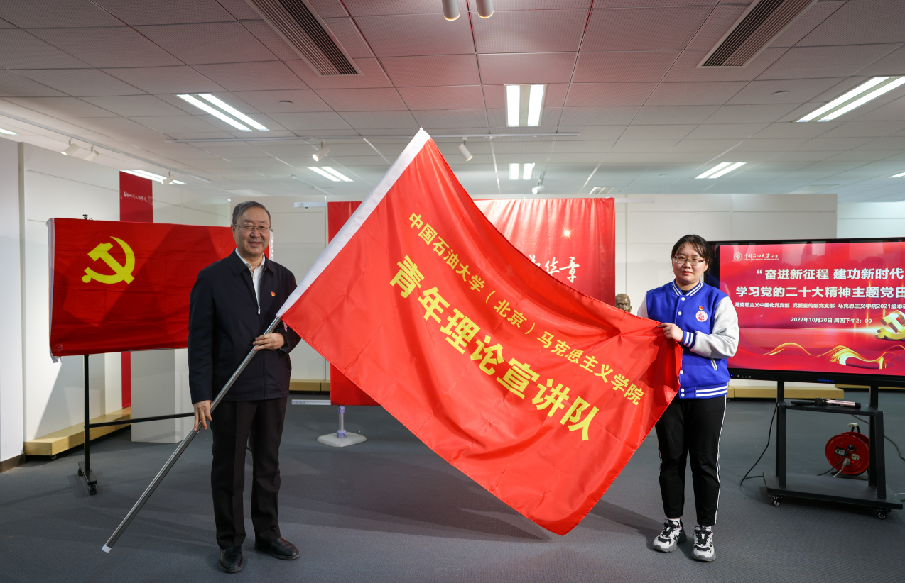 会上,陈峰为马克思主义学院青年理论宣讲队授旗。宣讲队将以习近平新时代中国特色社会主义思想为指导,把握正确导向,扎扎实实备课,深入开展宣讲,以实际行动宣传好党的二十大精神。