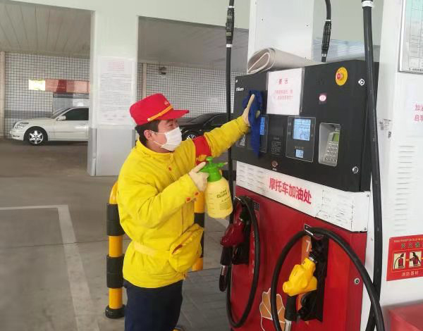 昌平站于1月22日接到内保通知,要求站内工作人员必须佩戴口罩服务,公司立刻意识到疫情的严重性,第一时间采取防控措施,通过多方渠道购买口罩、消毒液、酒精棉等防护用品,保障了加油站内的消毒防护需求。