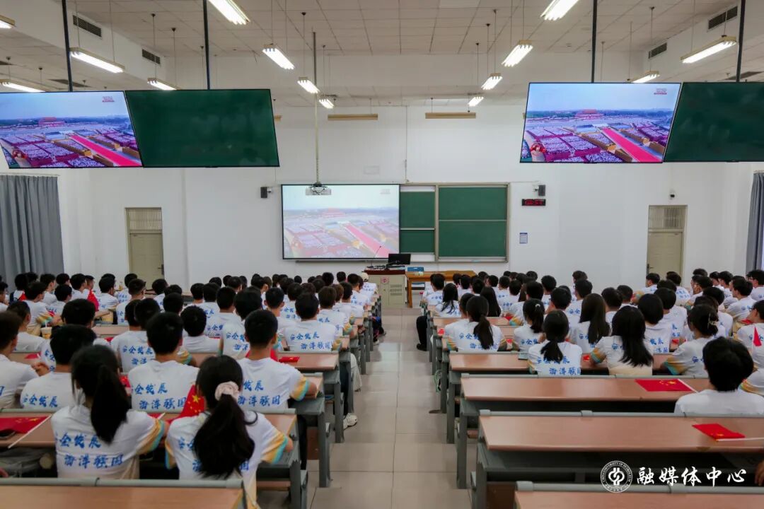 学校组织师生在学生活动中心、青年园、第三教学楼、第四教学楼等观看纪念大会直播,校领导在主楼A1502会议室观看直播。