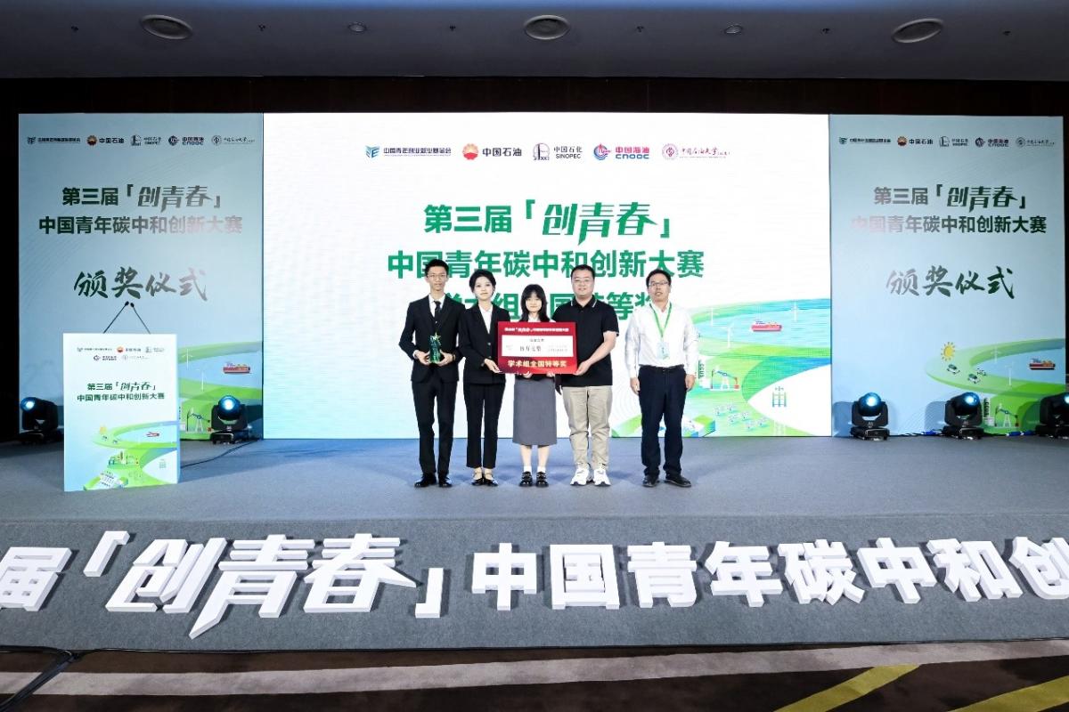 经角逐,学术组的典型含碳污染物催化净化与资源化利用项目、创新组的生物“智”造-油田绿色效益开发新途径项目、创业组的基于碳基半导体的超微型气体传感器项目荣获全国特等奖,并进行了团队项目分享汇报。这些项目通过技术创新、研究创新、视角创新为“双碳”目标的实现提供了青年方案。