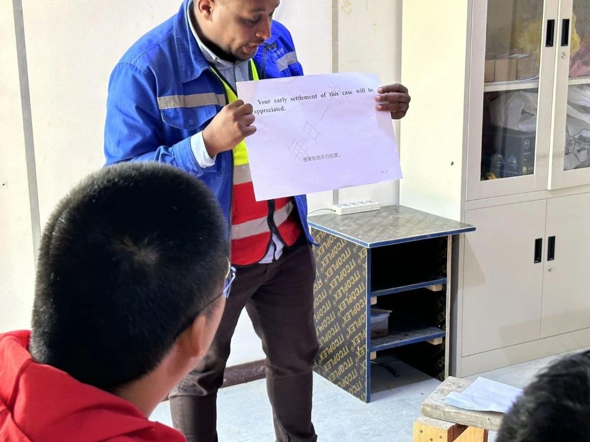 凭借在学校打下的扎实专业基础和自身对语言的敏锐天赋,阿米德精通中文、阿拉伯语、英语等多国语言。2021年,他加入中铁九局大连分公司沙特项目,成为项目中不可或缺的沟通桥梁。在项目中,他充分发挥语言优势,承担了与业主对接、技术文件翻译、设备采购谈判、施工现场对接等多项关键工作,为项目的稳步推进发挥了重要作用。阿米德深知团队合作的重要性,他主动利用个人时间在项目“每日一说”的课堂上为大家讲课,围绕业主文件起草与汇报、商务谈判、日常交流等场景,细致讲解如何精准用词用句,有效提升了项目团队成员的外语水平和沟通能力,为团队的高效协作提供了有力支持。