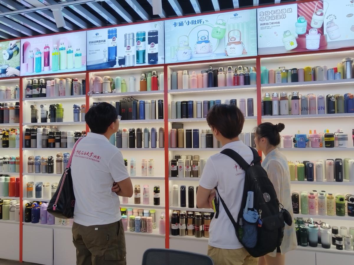 在义乌国际商贸城,实践团重点调研了义乌小商品供应链的“规模效应”与“定制能力”。作为全球最大的小商品集散中心,义乌国际商贸城7.5万个商铺形成的完整产业链,可实现从设计稿到成品“72小时快速响应”,且支持小批量定制。通过走访文创商户,实践团成员了解到液压注塑、金属冲压等工艺的成本控制逻辑,筛选出一批擅长IP衍生品生产的供应商,为学校文创的“个性化设计+规模化生产”提供资源储备。