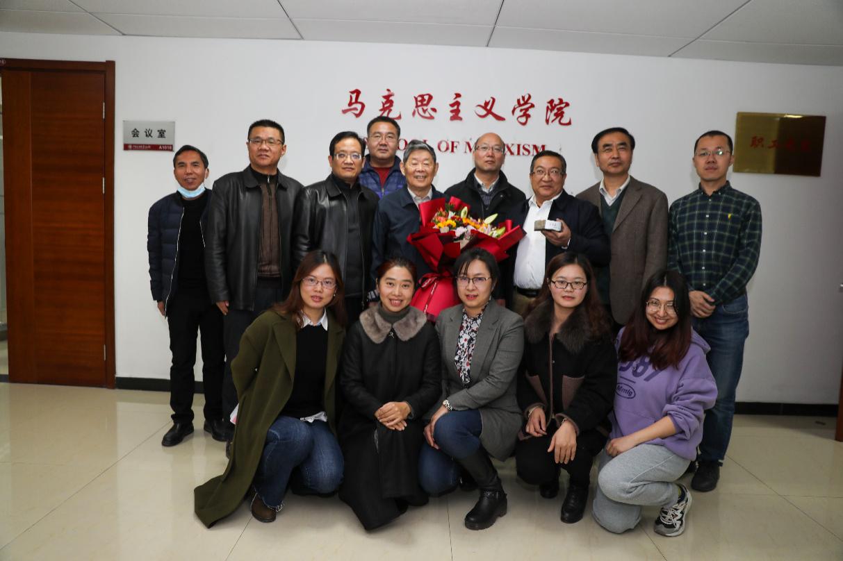 启民校友本次的中石大行,因为年事已高和身体原因,得以成行已经相当不容易。但出乎所有人意料的是,老人家到了校园里,不顾旅途疲乏,48小时内行程满满。第一站,他就参观了“学习回信精神,勇担时代使命”主题展览。在参观过程中,他被路过的马克思主义学院曹培强教授认了出来。曹教授热情地与启民校友交流,他惊喜地发现,眼前这位老人不仅是一位科研狂人,在政治理论方面还有极高的素养,对很多问题有着相当深刻且独到的见解。他感慨道:自己作为思政课老师,常常给同学们讲铁人精神,但直到今天才终于有机会见到“新时期铁人”并当面交流和学习,实在是太激动了。这次偶遇,让曹教授深感幸运,他征得启民校友的同意后,将他们的谈话录音并与启民校友合影,为以后的思政课保留下珍贵的影像资料。但同时,因为启民校友在中石大的行程安排很紧凑,马克思主义学院的其他老师可能就无缘与启民校友当面交流,曹教授为此倍感遗憾。启民校友得知后,不辞辛苦,特意将临动身去机场前的一个小时时间挤出来,与马克思主义学院的青年师生进行交流座谈,回答了马克思主义学院师生的提问,为马克思主义学院题词,为学生签名,并与大家合影留念。启民校友在校的第一站和最后一站都和马克思主义学院有关,所有互动问答都是在马克思主义学院,不能不说是启民校友和马克思主义学院的特殊缘分,这也让马克思主义学院的老师同学们惊喜和获益匪浅!