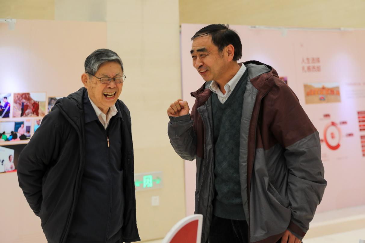 展板的初稿出来以后,我们第一时间发给启民校友审核。考虑到老人家已经八十多岁高龄,身体状况也不是很好,我们以为他从总体上把把关就行了,没想到他真是拥有钢铁般意志的“新时期铁人”,字斟句酌,甚至一些重要表达在图板上的位置、颜色,高一点还是低一点,在左边还是在右边,他都一一审阅,并嘱咐我们如果有可能的话,把修改后的版本再发给他看看,说得非常客气,但是态度非常认真。我们真的很难相信,这样一位誉满天下的石油行业扛鼎人物,会给我们的展览内容提出如此细致入微的指导。见到启民校友之前,满心以为这样一位认真的老人必定很严苛,但见了面才发现他十分平易近人,是一个性格开朗、待人亲切的老爷爷。