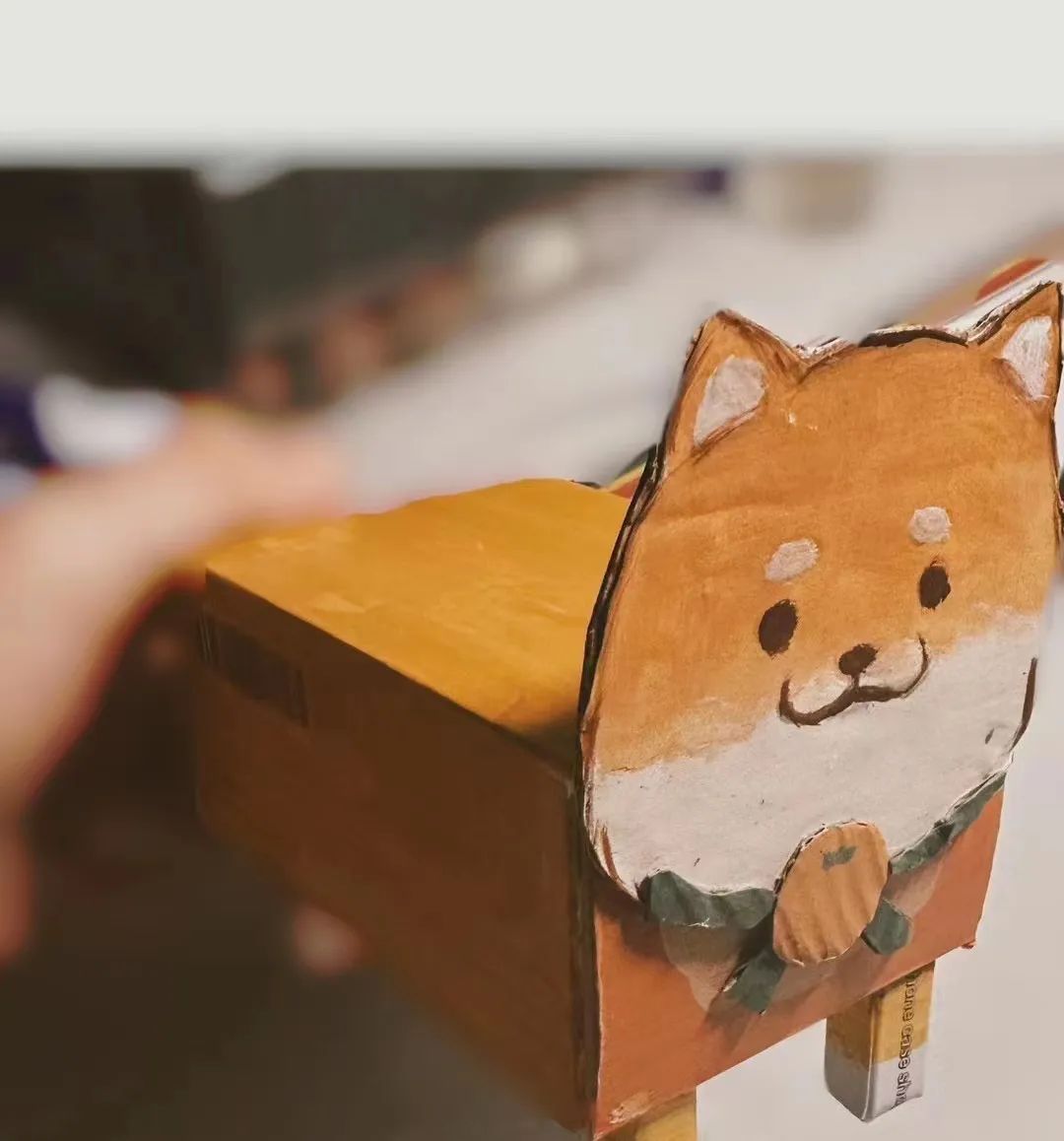 她还为舍友制作了一个萌萌的柴犬手工艺品。小柴犬温暖又快乐,特别治愈。