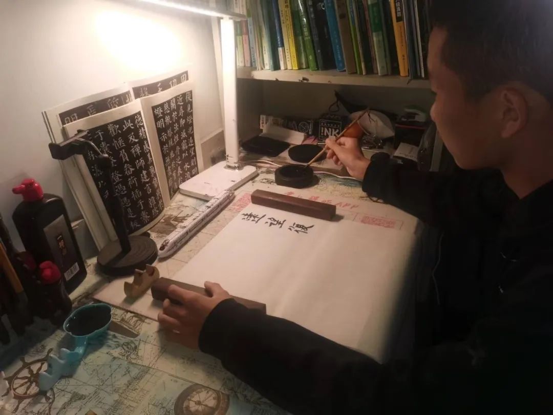 王天阳是信息科学与工程学院2019级计算机科学与技术专业的本科生,热爱中华传统文化,擅长书法、绘画、音乐等,平时喜欢临摹练习瘦金体,觉得练字特别能够静心,也爱做一些小贴画,去年还参加了庆祝中国共产党成立100周年文艺演出。