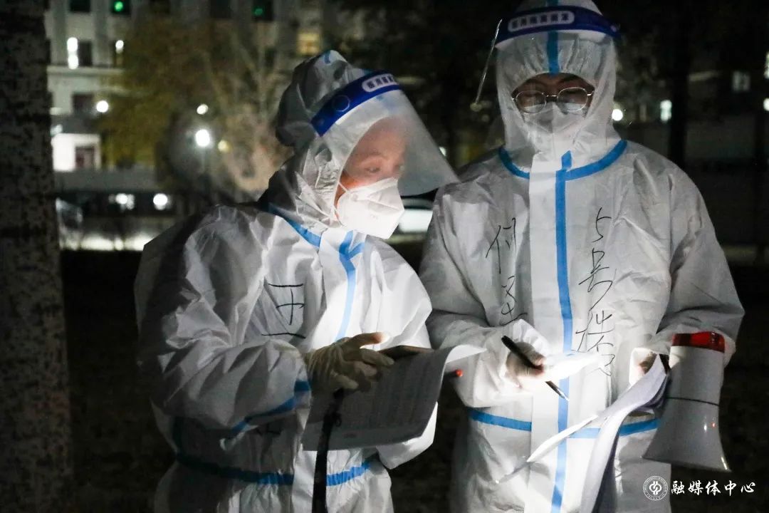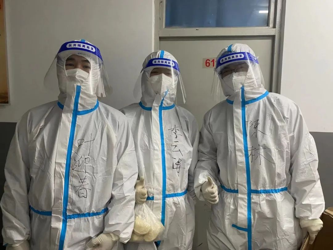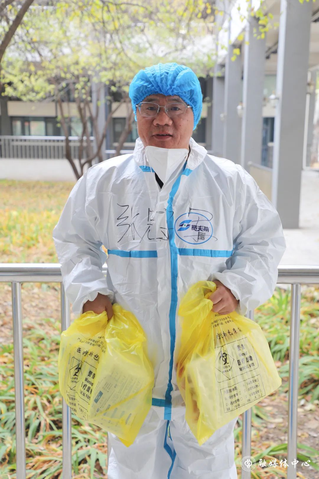 下午三点钟吃完午饭,张冠军给家人报平安。妻子心疼地唠叨:“50多了,高血压,还这么拼命。”张冠军连忙找补:“人家穆桂英53岁还挂帅征西呢,谁说俺男儿家不如女郎啊?!”他说,核酸采样小组里好多老师都是克服了家里这样那样的困难来的,有的家里孩子还小需要照料,有的刚刚失去了亲人,也有像他一样的“50后”“老一代”,“大家都在这个被认为‘高危’的工作中恪尽职守,我也为有幸参与到这样一个群体里而欣慰”。同学们也把张老师化身“大白”的事,在群里广而告之,表达着“师生同在、甘苦与共”的喜悦和感动。