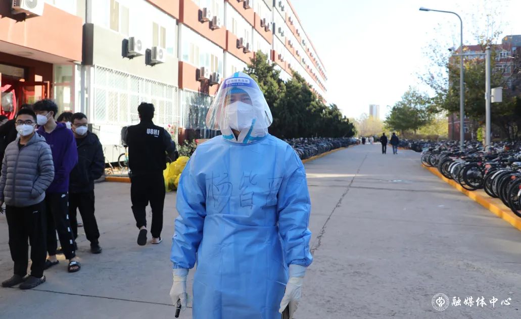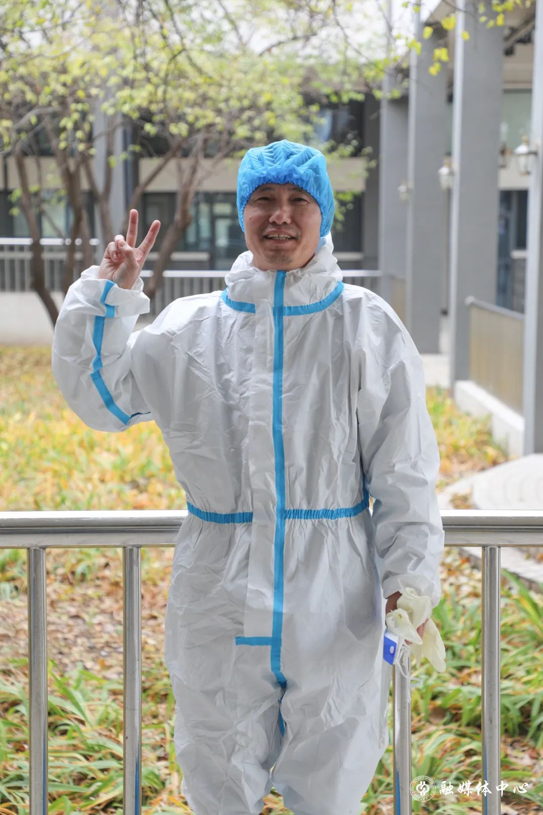 其实,张冠军老师此前已经参与过多次疫情防控的志愿服务。他说:“这是一个共产党员、一个高校思政课教师应该有的觉悟和行动,没有什么特别值得说的。”可是进入东校园以后,他还是感觉到了这次的“特别”,他被分在核酸采样组——这就意味着要面对更多因为密接而转运的风险;才知道包括头套、面罩防护屏、两层手套、两层脚套、两个N95口罩和最外边的隔水防护衣穿脱一整套,既有严格的流程,也是一项体力活。“以前‘大白’在我眼里是安全、是科学、是信任、是光荣,现在我更感受到是危险、是繁琐、是严谨、是责任”。