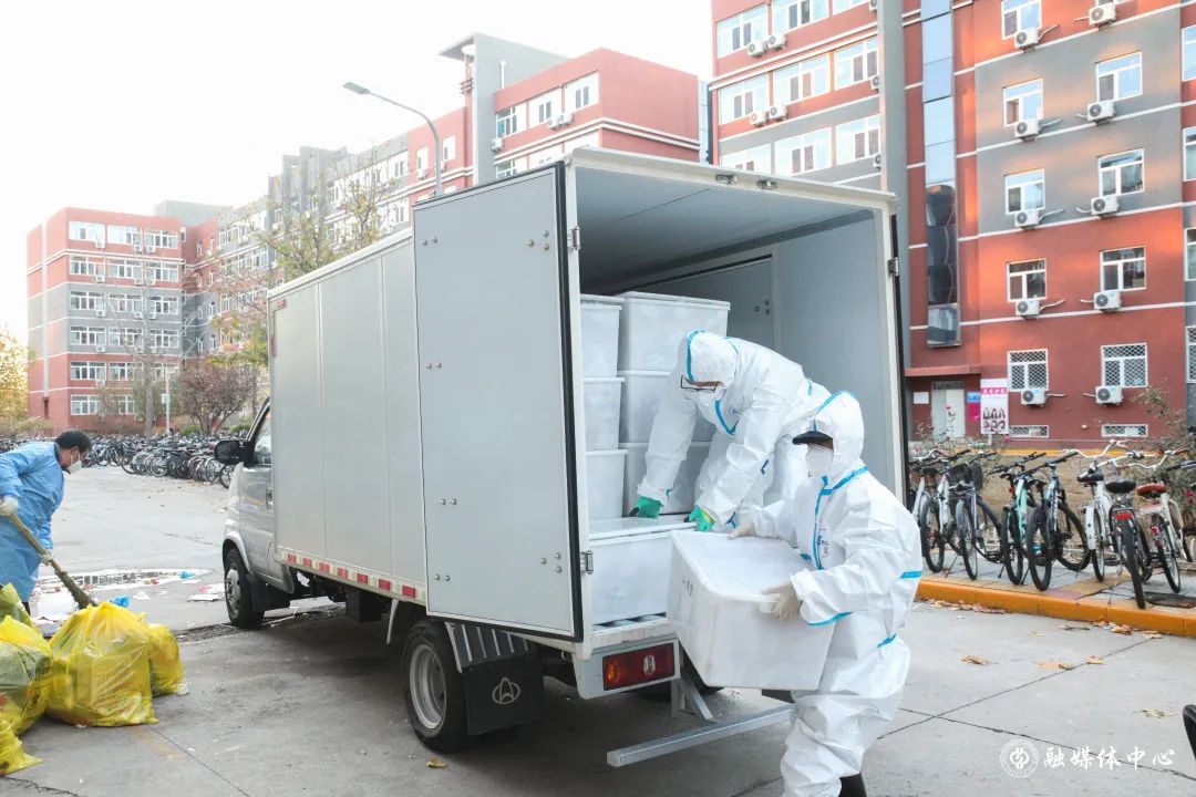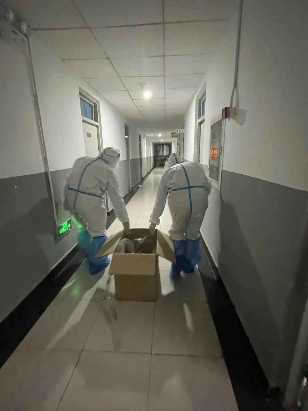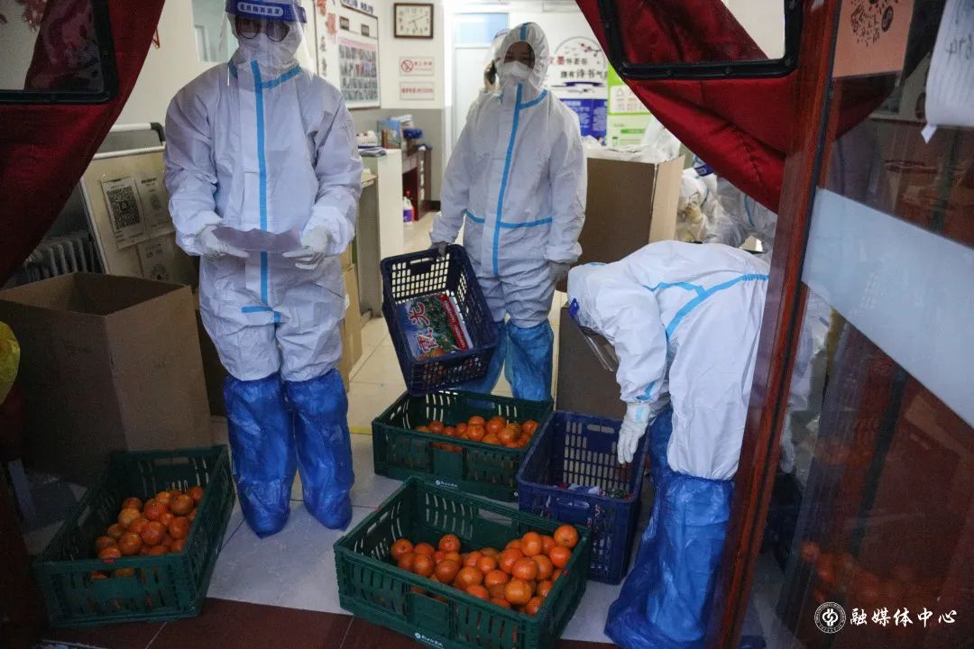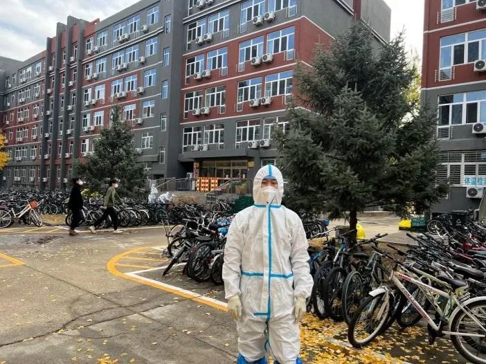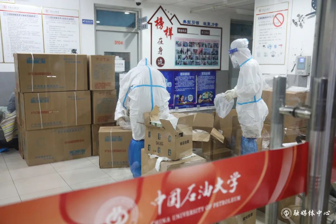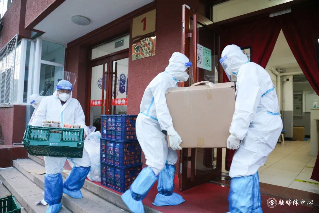 在东校园,像赵振聪这样的老师还有很多。许多党员干部主动来到东校园,为学生运送、发放物资。屋外寒风阵阵,因为防护服厚重不透气,每次送完餐衣服也已经全部湿透。“一天三身汗”“很多老师都感冒了,有些年龄大的老师体力不支,就是在努力撑着,也很心疼。”
