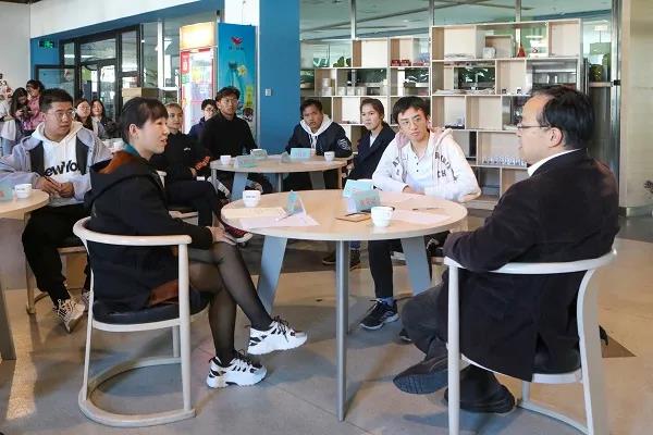 “校长下午茶”活动中,张来斌与同学们一起边喝茶边促膝长谈