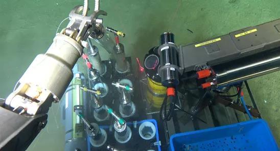 为了节省潜器电力,在下潜过程中,“深海勇士号”载人深潜器是不开灯的。经过近一个小时的下潜,“深海勇士号”终于下潜到了水下1500米的目标位置附近,通过坐标确定目标方位后开始了紧张有序的观测工作。