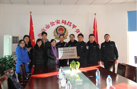 1219日下午,石大工商管理学院分党委与中共北京市昌平区松园派出所党支部红色“1+1”共建活动座谈会在松园派出所会议室召开。工商管理学院党委副书记罗晓燕、本科2013-1党支部成员、学生党员代表,松园派出所党支部副书记罗兆静,副所长邵宝仓,松园派出所党支部党员代表等参加了共建会。
