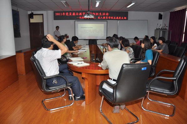 为深入贯彻第十七届中央纪委第六次全会精神、《中国共产党党员领导干部廉洁从政若干准则》和《直属高校党员领导干部廉洁自律“十不准”》,根据学校纪委的统一要求,9月6日,远程教育学院、成人教育学院党支部召开了党员廉洁教育专题组织生活会。
