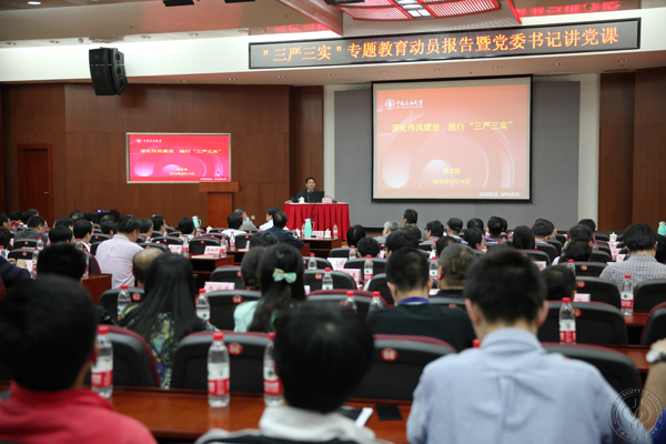 5月14日下午,石大在翠宫二层报告厅召开“三严三实”专题教育动员大会,党委书记蒋庆哲作了题为《深化作风建设,践行“三严三实”》的专题党课。校领导和全体处级干部、教工党支部书记、党群部门党务干部和辅导员参加了学习。会议由党委副书记、纪委书记刚文哲主持。