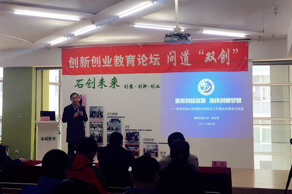 陈玉祥作了题为“集聚创新资源,助推创业梦想——创新创业链式工作模式的探索与实践”的专题报告,详细解读了国家支持高校开展创新创业教育的相关政策,全面介绍了西南石油大学在深化创新创业教育改革方面的典型做法,分享了学校承办和参与“互联网+”创新创业大赛的相关经验,并就高校开展“双创”工作的痛点、“双创”教育课程建设等内容展开互动交流。