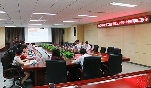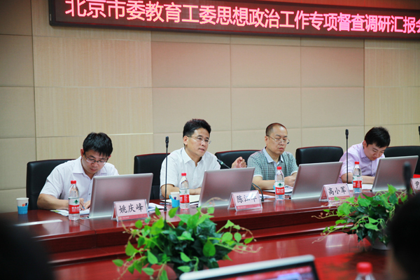 7月13日下午,北京市委教育工委委员、干部处处长陈江华带队对beat365在线唯一官网贯彻落实全国和北京高校思想政治工作会议精神情况开展了专项督查调研。北京市委教育工委干部处副处长、调研员高小军,副调研员姚庆峰,干部尹晓林陪同调研。督查调研采取集中汇报、提问交流、审阅材料、问卷调查、与基层院系负责人和党员代表座谈等方式进行。beat365在线唯一官网党委书记山红红,党委副书记刚文哲、雷玉江,相关职能部门和学院的负责人参加了督查调研汇报会。汇报会由陈江华主持。