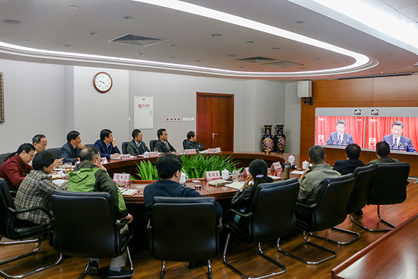 在收看过程中,与会人员边学习、边思考,认真领会报告的思想内涵和理论精髓。