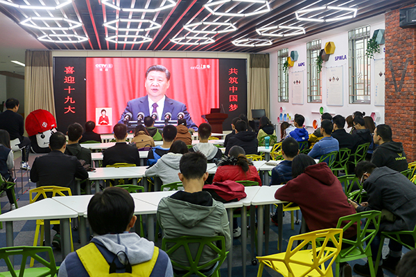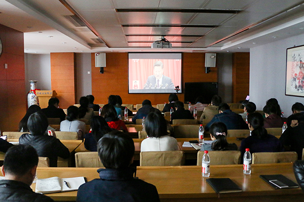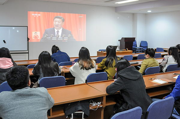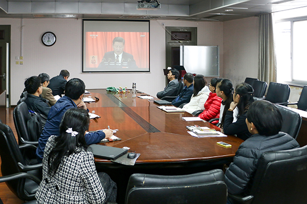 【喜迎十九大】beat365在线唯一官网组织师生集中收看党的十九大开幕会电视直播