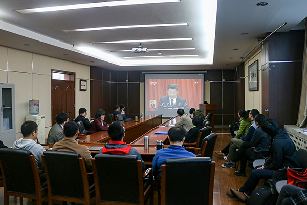 10月18日上午9:00,中国共产党第十九次全国代表大会在人民大会堂隆重开幕,习近平总书记代表第十八届中央委员会向大会作了题为《决胜全面建成小康社会 夺取新时代中国特色社会主义伟大胜利》的报告。beat365在线唯一官网广大师生员工热切关注党的十九大,通过电视、网络、新媒体等途径,在主楼、学生活动中心、地质楼、教学楼等多个会场以饱满的精神状态收听收看大会盛况。学校召开党委中心组理论学习扩大会,全体党委委员参加学习,集体收看大会直播。学校各分党委、党总支、直属党支部都根据实际情况,组织师生收看了党的十九大开幕会实况转播。