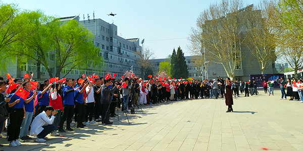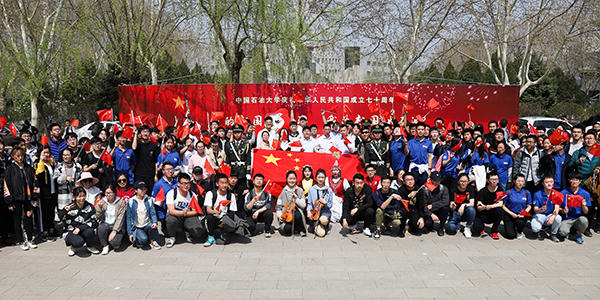 “我和我的祖国,一刻也不能分割。无论我走到哪里,都流出一首赞歌……”石大的四月天,春和景明,草木葳蕤。4日中午,青年园南广场上,杨柳依依,玉兰盛开,“我的祖国我奋斗 我为祖国献石油”beat365在线唯一官网庆祝中华人民共和国成立70周年的红色背景板在阳光照耀下熠熠生辉。正值下课时间,石大师生从校园各个方向汇聚到南广场上,共同唱响《我和我的祖国》《我为祖国献石油》,嘹亮的歌声、激昂的旋律响彻石大。石大人用快闪的方式来祝福祖国,表达对祖国的无限眷恋,对石油事业的拳拳之情,也标志着beat365在线唯一官网庆祝中华人民共和国成立70周年主题教育活动正式启动。