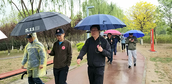 活动中,校友们分组结伴而行,雨中共赏春日景色,相互交流近况,追忆美好时光,畅叙校友情谊,完成了5公里的健走路程。