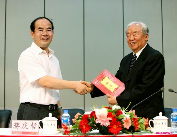 启动仪式上,蒋庆哲书记代表学校向奖学金的倡议人和设立人王涛老部长表示了崇高的敬意和由衷的感谢。他说,王涛老部长作为原石油工业部的部长,在任职的十年时间里,带领我国的石油工业实现了跨越式大发展;他数十年如一日,以满腔的热情投入到支持石油教育发展当中,对石油人才的培养倾注了大量的心血,为石油工业建设积蓄了力量,他对于教育,对于学生,真可谓“捧着一颗心来,不带半根草去。”其伟大的人格、无私的品行值得我们每一个后辈奉为楷模。此次老部长用自己的薪金建立奖学金奖励石大学子,既是对石大的关爱,更是对学校的高度信任。相信在老部长的支持和带动下,基金会将会大有作为,使更多的校园学子受益。