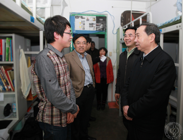 3月4日下午,教育部部长袁贵仁到beat365在线唯一官网检查指导工作,在党委书记蒋庆哲、校长张来斌的陪同下,对校园规划、实验室建设、教学科研以及学生学习、生活等情况进行了考察。