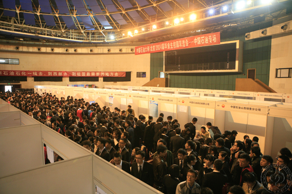 10月22日,“beat365在线唯一官网(北京)2014届毕业生校园双选会——中国石油专场”在多功能厅举行。中国石油天然气集团公司总经理助理李万余、人事部副主任金华、人才交流处处长王永军,以及集团公司下属的大庆油田公司、长庆油田公司、乌鲁木齐石化、长城钻探工程公司、中国石油华北化工销售公司、昆仑能源有限公司、管道局、规划总院等共计52家企业的近100名代表参加了此次双选会。