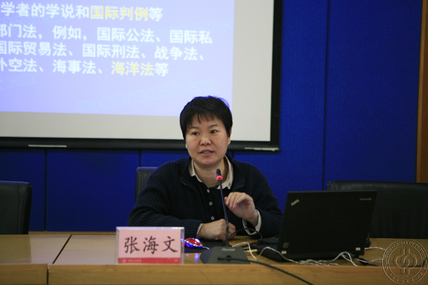 报告会上,张海文介绍了国际法的构成、内容和适用领域,普及了内水、领海、毗连区、专属经济区等概念。她认为,东海问题主要包括东海划界问题、争议海域资源问题、钓鱼岛问题及专属经济区权利的“灰色区域”等问题,不仅仅是法律或历史或外交上的问题;南海问题主要包括南沙群岛领土主权争端、南海专属经济区和大陆架划界争端以及航行自由等问题,其实质是南海争端,从法理角度看,南海周边国家对南沙群岛领土主权的要求是非法无效的,南海断续线是具有充分法律依据的。