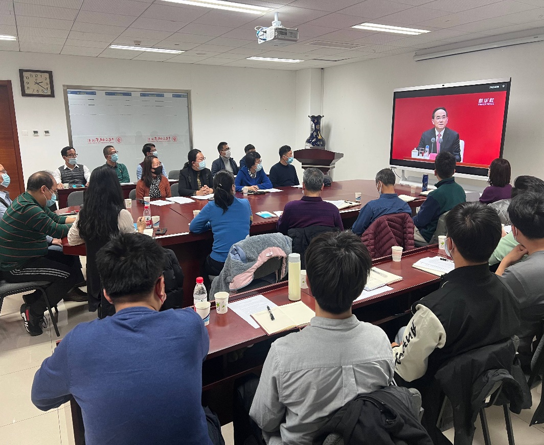 过程装备系教工党支部书记王娟首先介绍了此次联合学习活动的背景和初衷。大家集中观看和学习了十九届六中全会视频学习专题资料。过程装备系教工党员陈建义带领大家一起回顾了党的历史上的三个重大决议。信息化管理处党支部书记张云祥表示,国际国内形势复杂,选择坚定不移跟党走,坚决拥护以习近平同志为核心的党中央的指导思想,是实现全体人民共同奋斗目标的前提。
