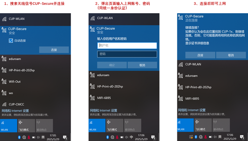 i.搜索无线信号CUP-Secure并连接;