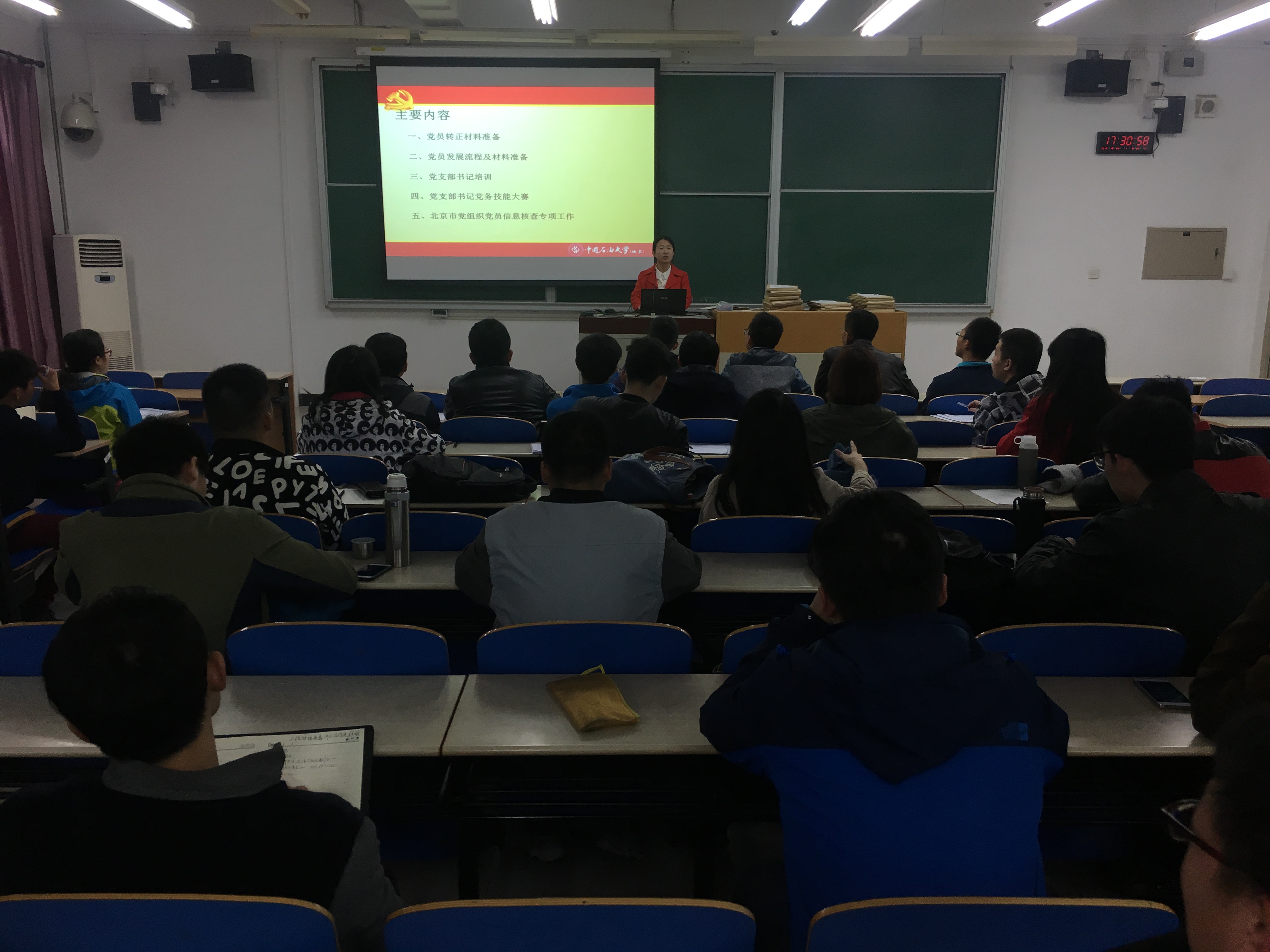 10月24号晚,石油工程学院学生党支部书记培训会在三教311成功举行。党务秘书方百会主持,辅导员和学生党支部书记全部参加。