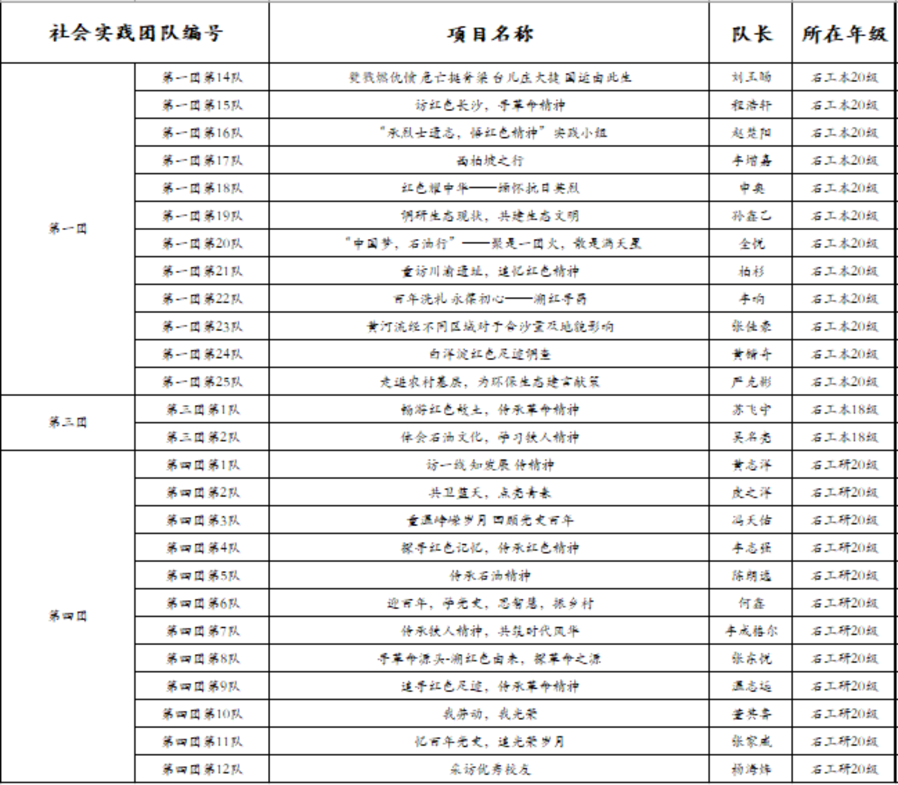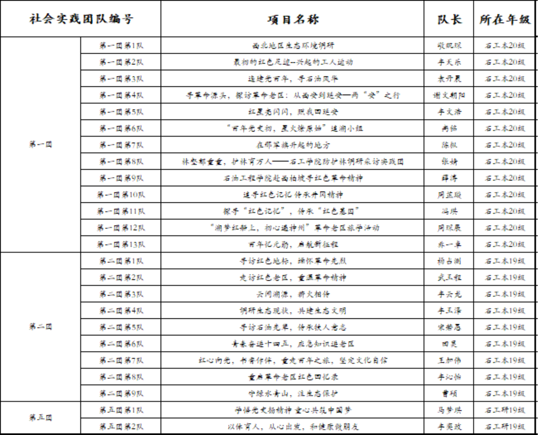 2021年是中国共产党成立100周年,是“两个一百年”奋斗目标的交汇之年。为进一步激励广大石油学子感悟时代脉搏、传承革命薪火、勇担强国使命,我院以“践行铁人精神、赓续红色血脉、涵养家国初心”为主题,组建50队600余名同学奔赴各地开展了2021年暑期社会实践活动。目前,实践已进入总结阶段,同学们将满载而归。石油工程学院按照上级要求,现将暑期社会实践结题工作相关事宜通知如下: