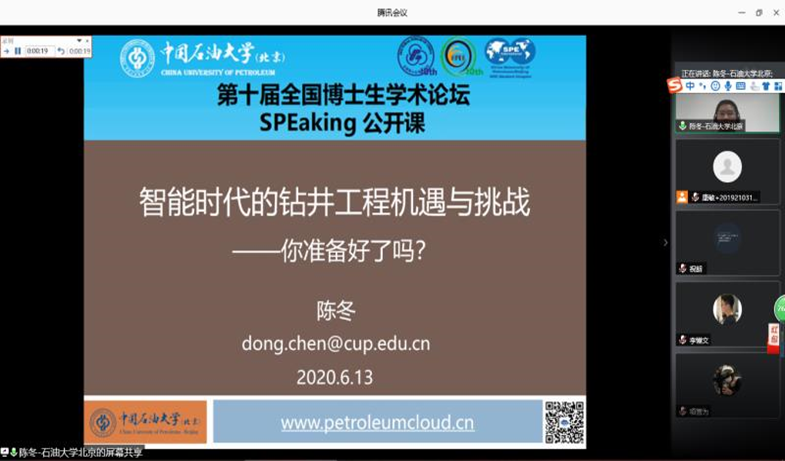 为贯彻“三全育人”的教育理念,在特殊时期促进学生了解石油知识和石油行业发展进程,将石油行业的发展成就转化为育人素材,引领“学石油,爱石油”的风尚。6月13日上午,石油工程学院通过腾讯会议平台举办了SPEaking公开课主题讲座。beat365在线唯一官网(北京)石油工程学院副教授陈冬担任主讲嘉宾,并做了题为“智能时代的钻井工程机遇与挑战”的报告,活动共吸引200余名师生参加。