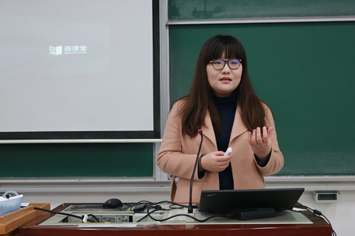 大会第四项议程是“雨课堂”在线培训。此项议程由韩国庆副院长主持,请清华大学的老师为学院教职工详细介绍了 “雨课堂”的基本功能,进行了“雨课堂”实操演示并现场与老师们互动交流。